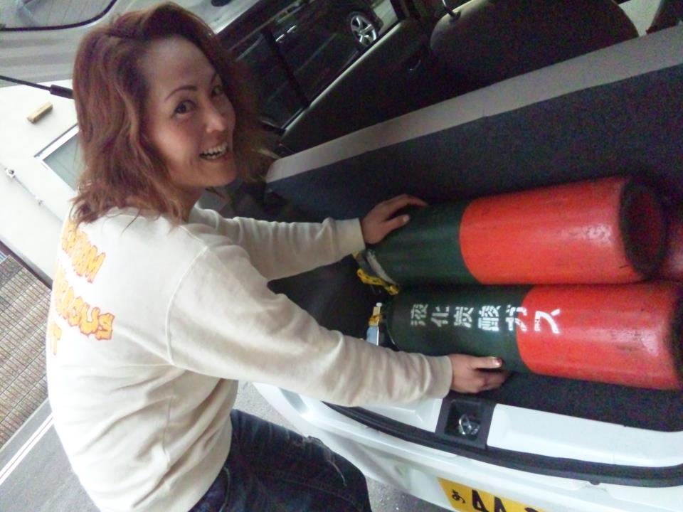 舞台で使う特殊効果ボンベを運ぶのでした・・・