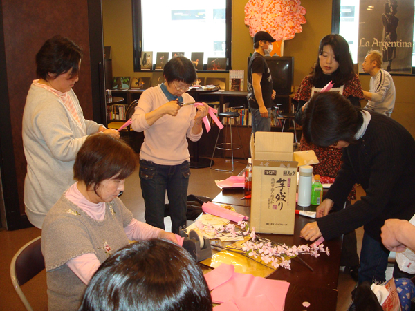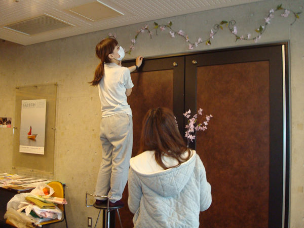 ロビーでは桜の下での出店などで、お客様を